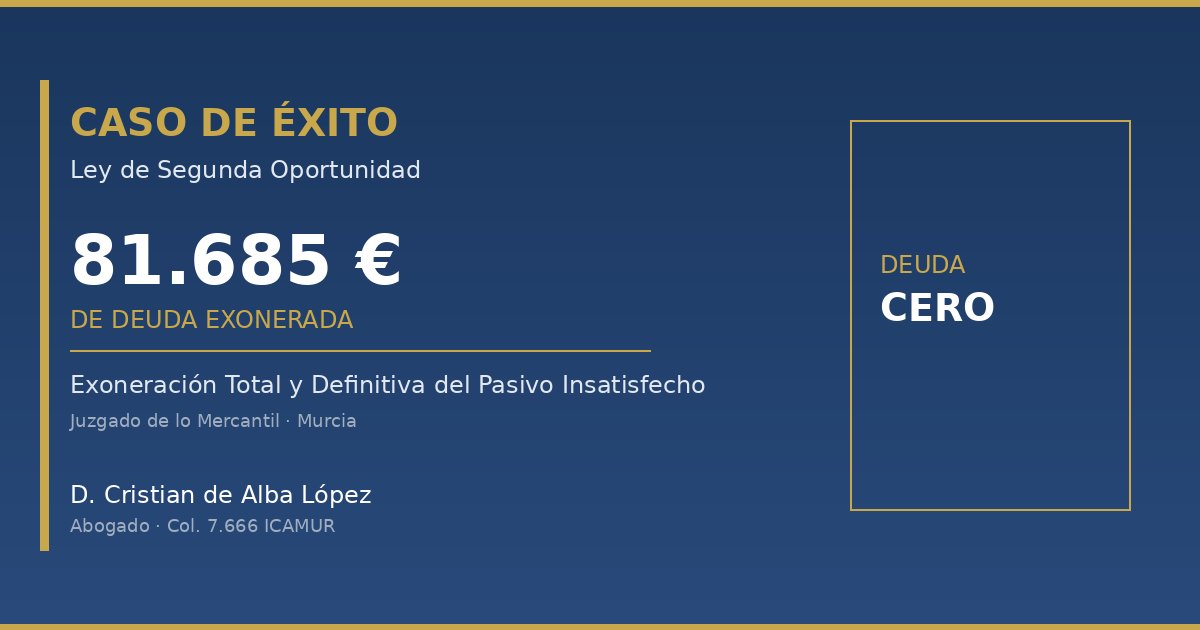 La Ley de Segunda Oportunidad (LSO) es una herramienta jurídica pensada para particulares y autónomos que no pueden hacer frente a sus deudas. Permite cancelar total o parcialmente las obligaciones económicas bajo ciertos requisitos, ofreciendo la posibilidad de volver a empezar sin cargas financieras.